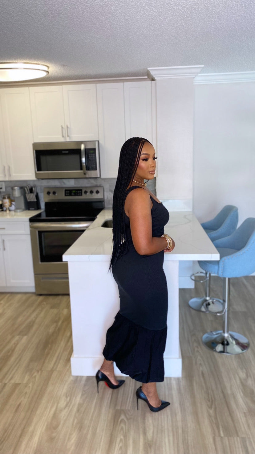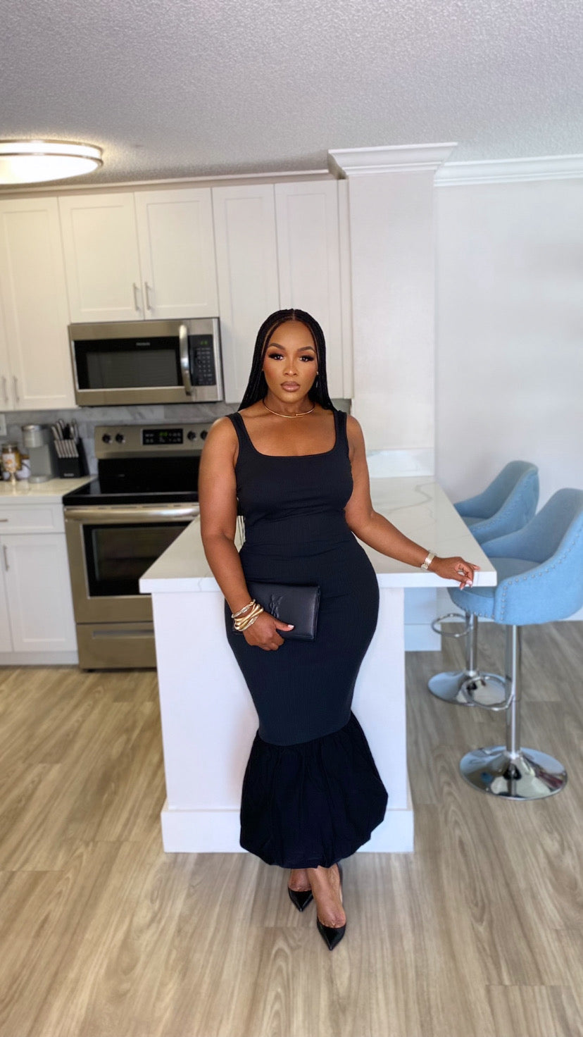 Sleeveless bubble hem midi dress